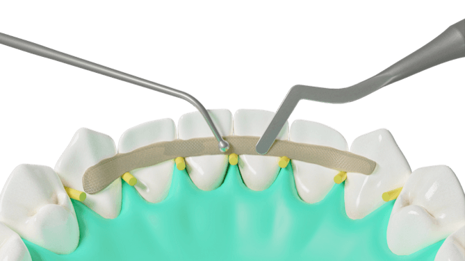 La striscia può essere modellata e adattata nella posizione desiderata usando strumenti classici, come le pinzette, le spatole, i condensatori e altri strumenti per otturazioni composite. Evita di usare strumenti con bordi affilati perché possono danneggiare le fibre di rinforzo.